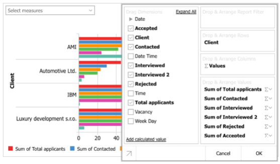 * Aplikace postavená na principech multidimenzionality - pohled na stejná data z různých úhlů pohledu
