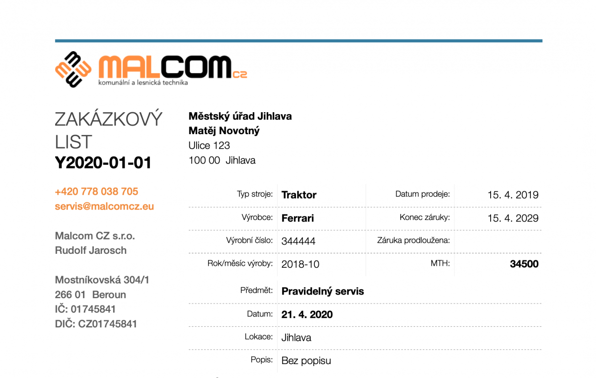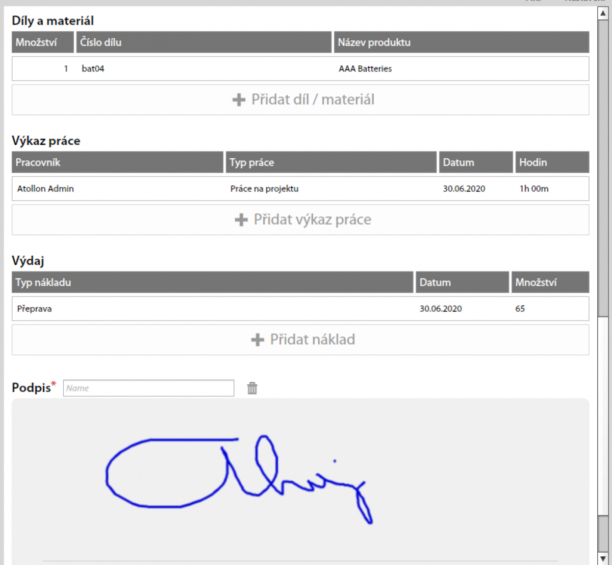 Připravte servisnímu technikovi předvyplněný zakázkový list (včetně přehledu materiálu a náhradních dílů) ještě v procesu plánování serviního výjezdu, nechť se může servisní technik věnovat zákazníkovi a jeho problému a nemusí řešit administrativu. Na technikovi je pouze ověřit kontrolní seznam úkolů k servisu, přehled využitého materiálu a nechat zákazníkovi zápis z realizované servisní aktivity elektronicky podepsat. Zákazník dostává automaticky e-mailem potvrzení formou profesionálního PDF dokumentu, což zvyšuje transparentnost vztahu a usnadňuje následný proces vyúčtování služby.